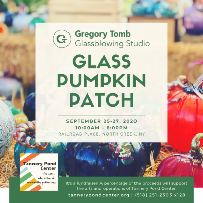 Wander through a dazzling array of glass pumpkins in a variety of colors, sizes and prices! Pumpkins start at $35 and a portion of the sales will support the arts and operations of Tannery Pond Center. Town of Johnsburg residents will receive a 10% discount! Please bring ID. // Masks are required. Measures will be in place to promote physical distancing. // For more info, please visit glasspumpkinpatchfundraiser.com.